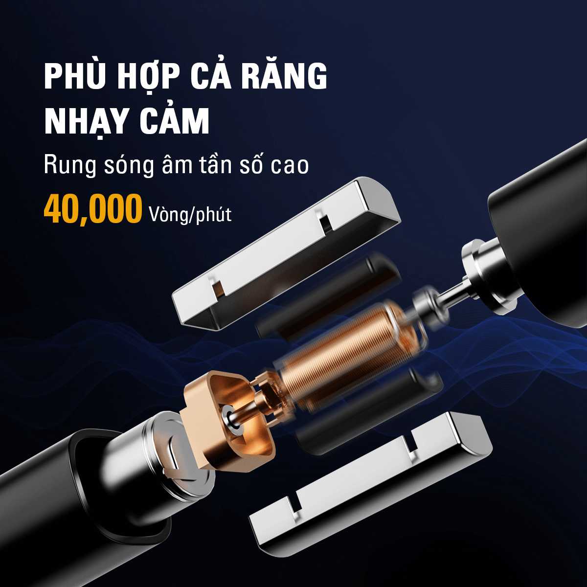 Công nghệ siêu sóng âm 40.000 nhịp/phút – Làm sạch sâu kẽ răng, hiệu quả gấp 120 lần, răng trắng sáng rõ rệt.